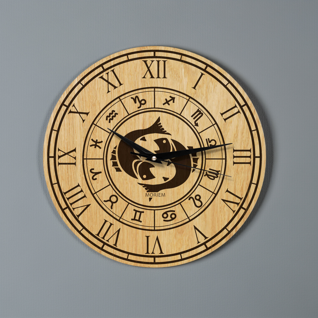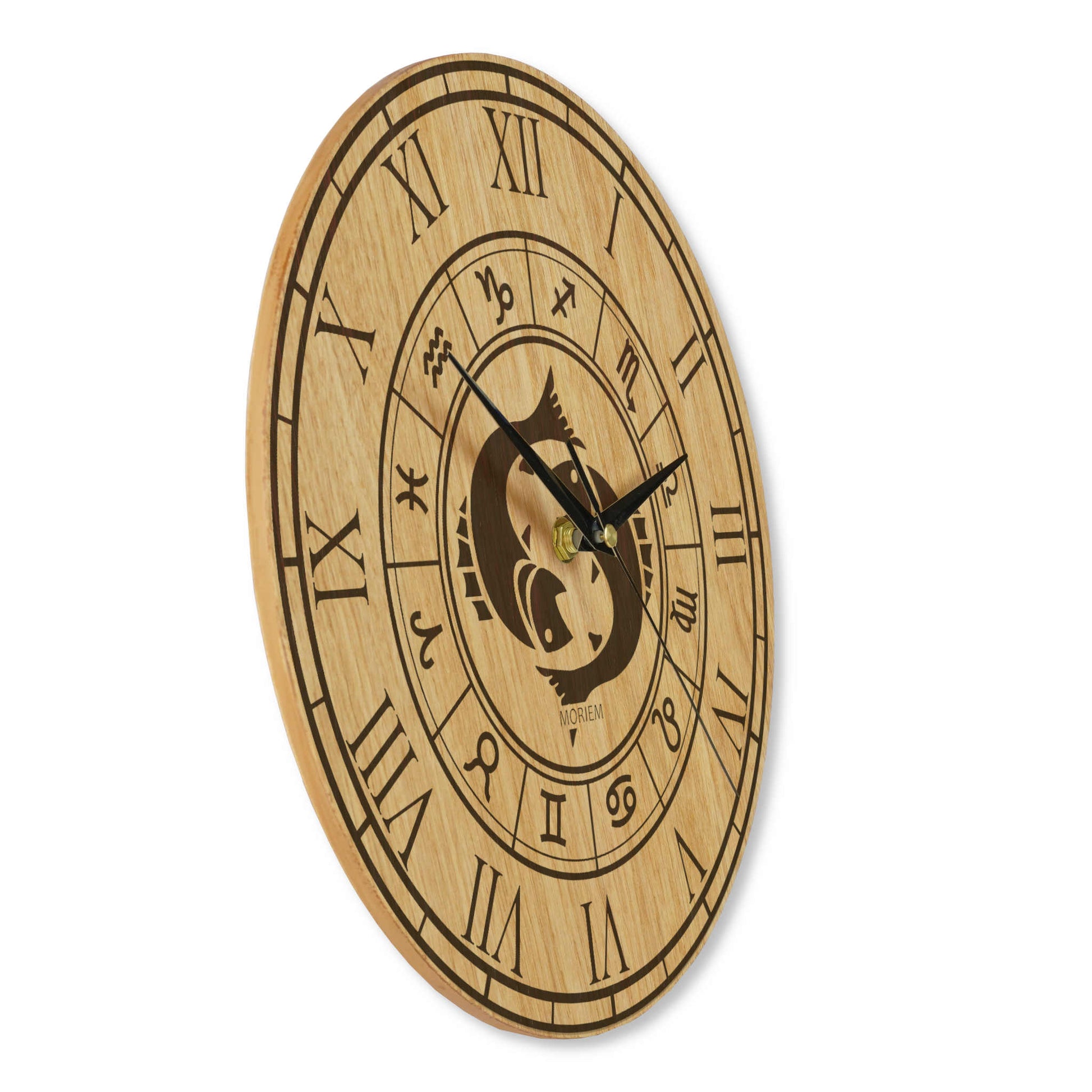 Holz Wanduhr mit Sternzeichen- Motiv Fische - 30 cm/40 cm groß