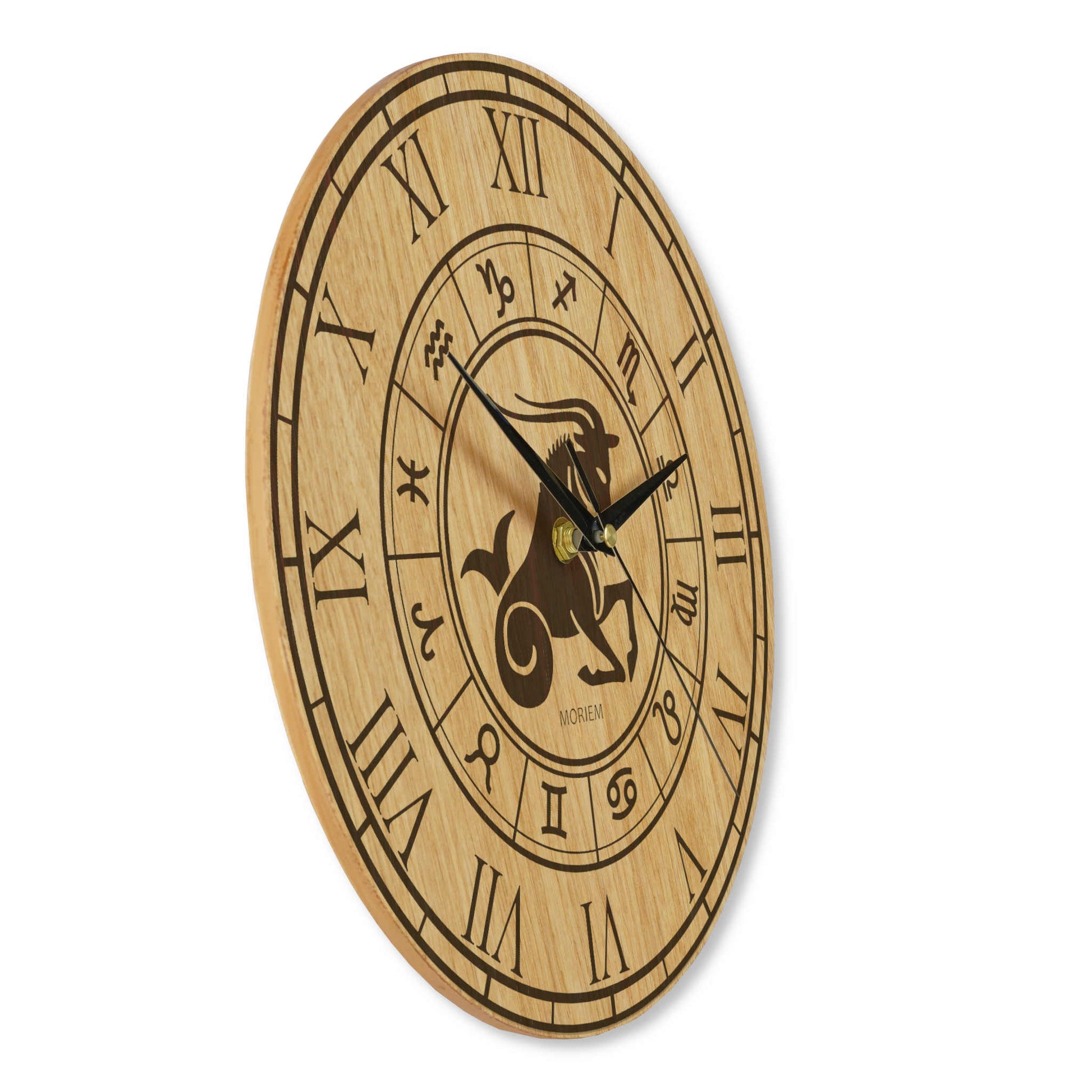 Holz Wanduhr mit Sternzeichen- Motiv Steinbock - 30 cm/40 cm groß