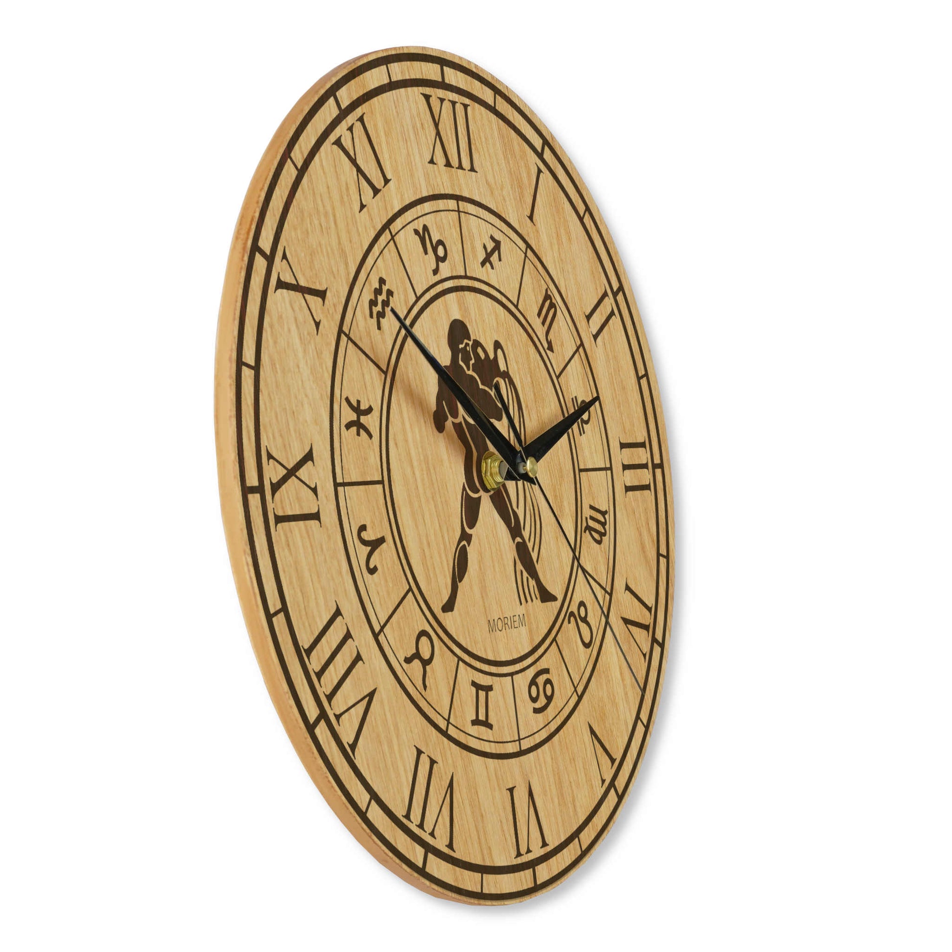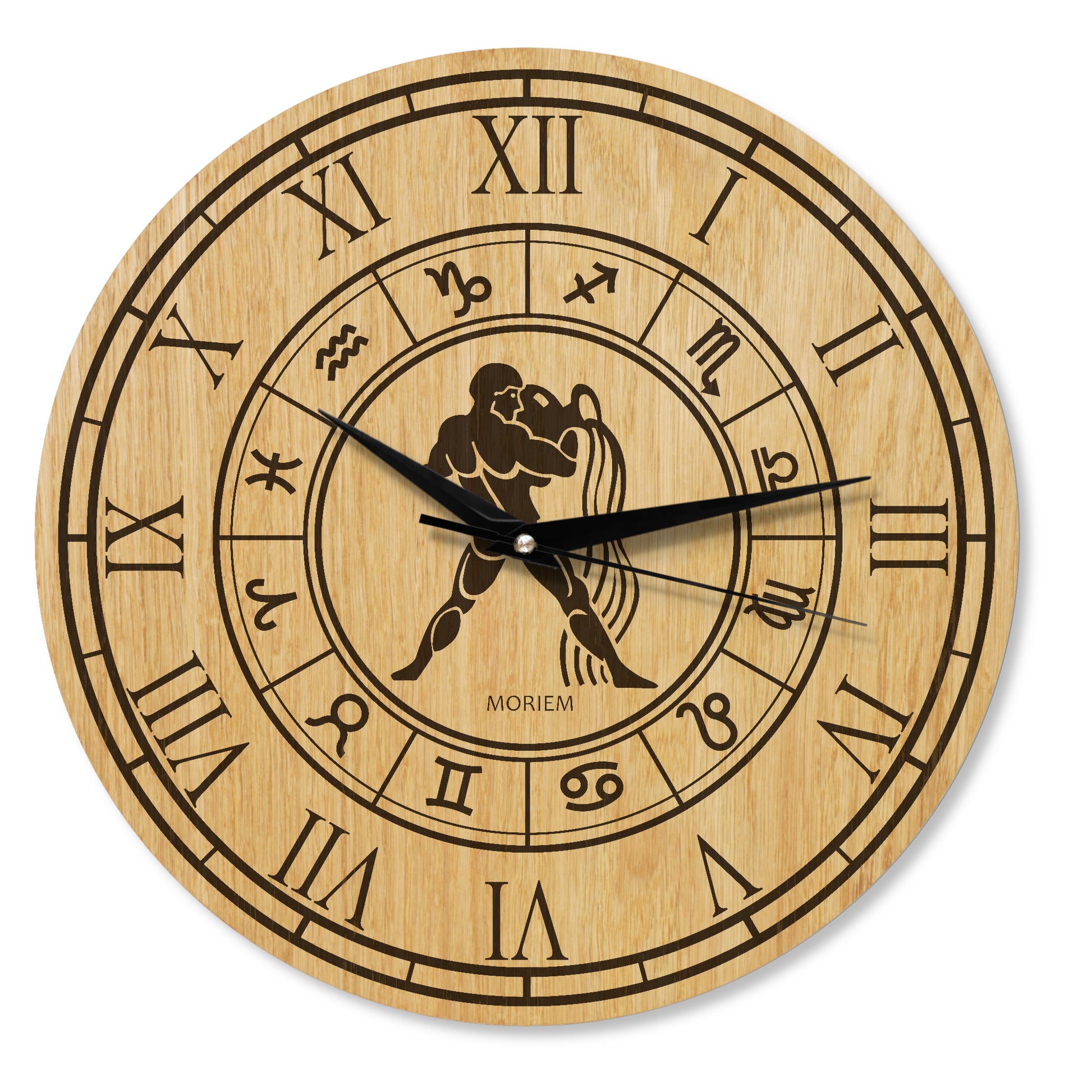 Holz Wanduhr mit Sternzeichen- Motiv Wassermann - 30 cm/40 cm groß
