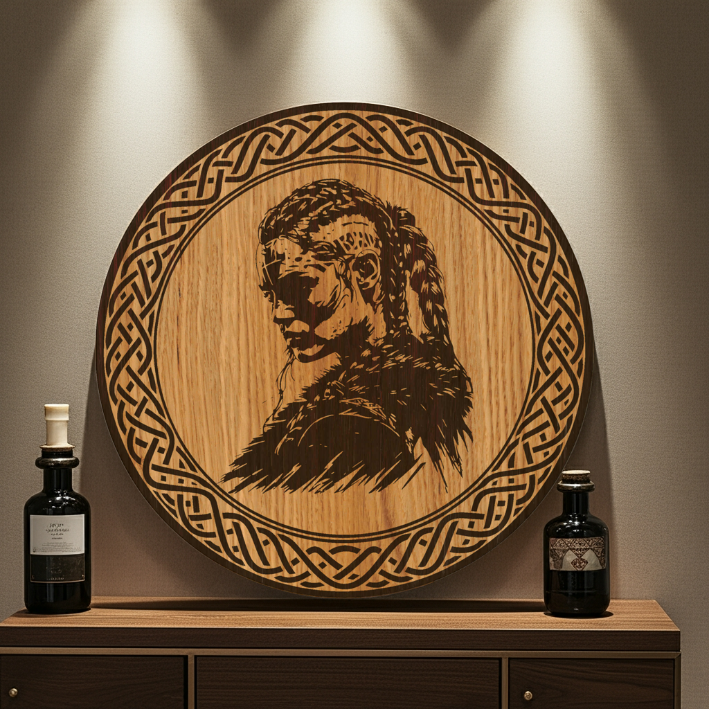 Das Holzbild „Wikinger Kriegerin“ bringt nicht nur kraftvolle Energie und nordischen Charme in Ihr Zuhause, sondern erzählt auch die Geschichte von Mut, Stärke und Entschlossenheit. Mit einer Größe von 30 oder 40 cm zeigt dieses detailreich gestaltete Wandbild eine beeindruckende Wikinger Frau, deren Ausdruck lebendige Abenteuerlust und Tapferkeit vermittelt. Gefertigt aus hochwertigem, naturbelassenem Holz, fügt sich das Bild mit seiner warmen, rustikalen Ausstrahlung harmonisch in verschiedenste Einrichtungsstile ein. Ob im Wohnzimmer, Arbeitszimmer oder Flur – dieses Dekorationselement setzt einen markanten, inspirierenden Akzent. Es ist die perfekte Wahl für alle, die Wert auf authentisches Design legen und ihrem Zuhause eine individuelle, geschichtsträchtige Note verleihen möchten. Mit diesem Wandbild holen Sie sich ein Stück faszinierender Kulturgeschichte direkt an Ihre Wand.