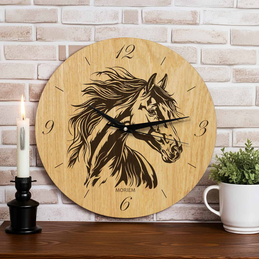 Pferde Wanduhr aus Holz - Wohnzimmeruhr Vintage Motive- 30 cm/ XL 40 cm groß