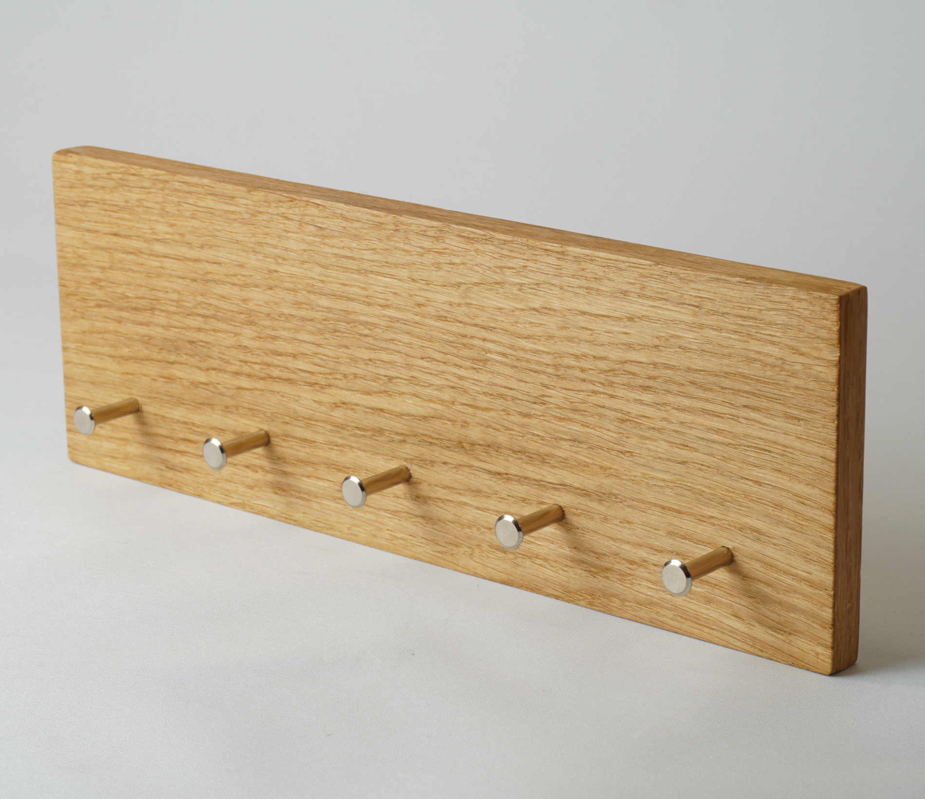 Praktische Schlüsselleiste aus massiver Eiche – das perfekte Accessoire für Ihren Eingangsbereich. Mit ihrer warmen, natürlichen Holzmaserung fügt sie sich elegant in jedes Interieur ein. Die robuste Konstruktion bietet zuverlässigen Halt für Ihre Schlüssel und bewahrt diese vor dem Verlieren. Ideal für moderne und klassische Einrichtungsstile gleichermaßen. Eine zeitlose Lösung, die Ordnung schafft und gleichzeitig als dekoratives Element besticht.