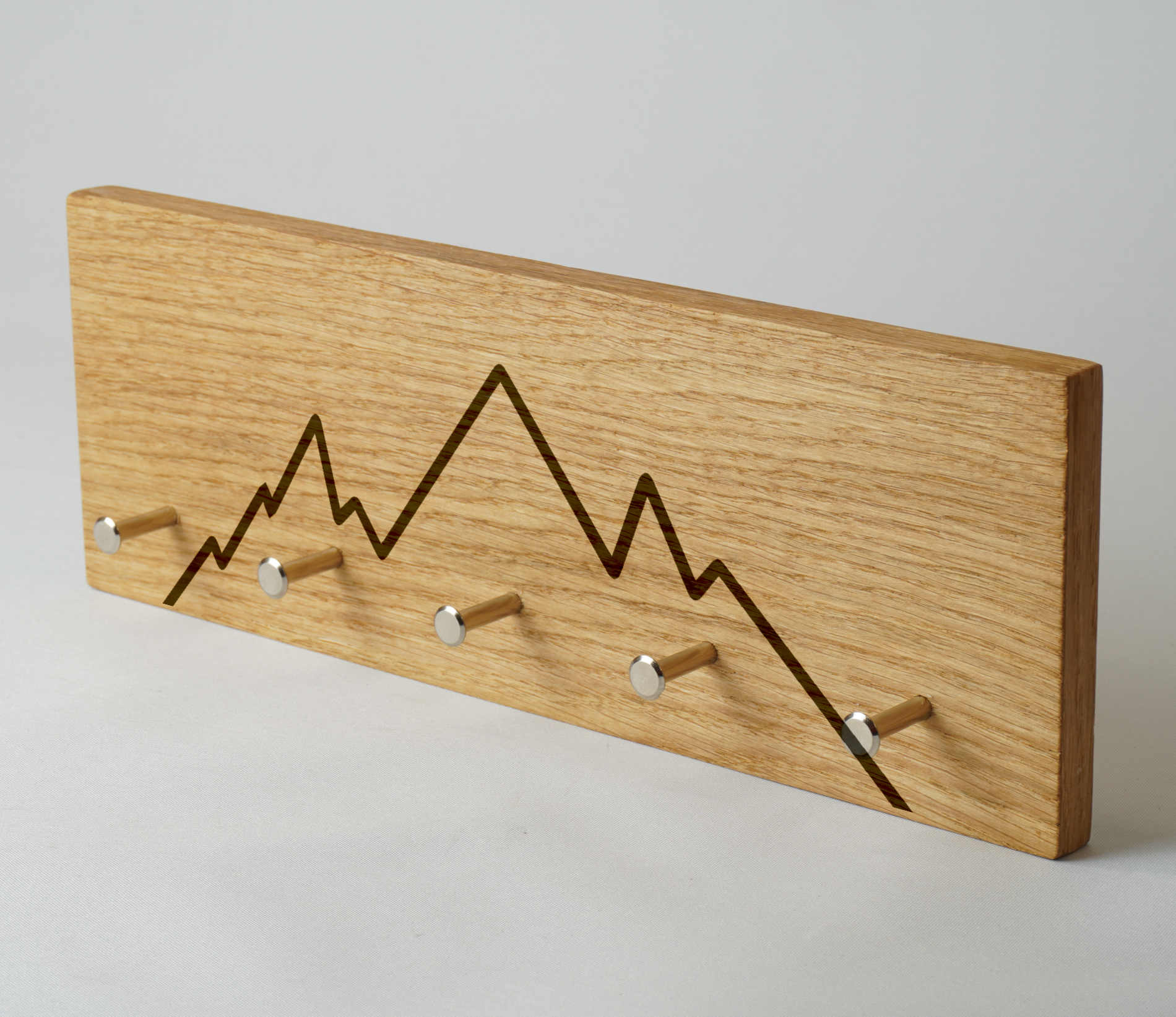 Schlüsselbrett Eichenholz mit Bergmotiv