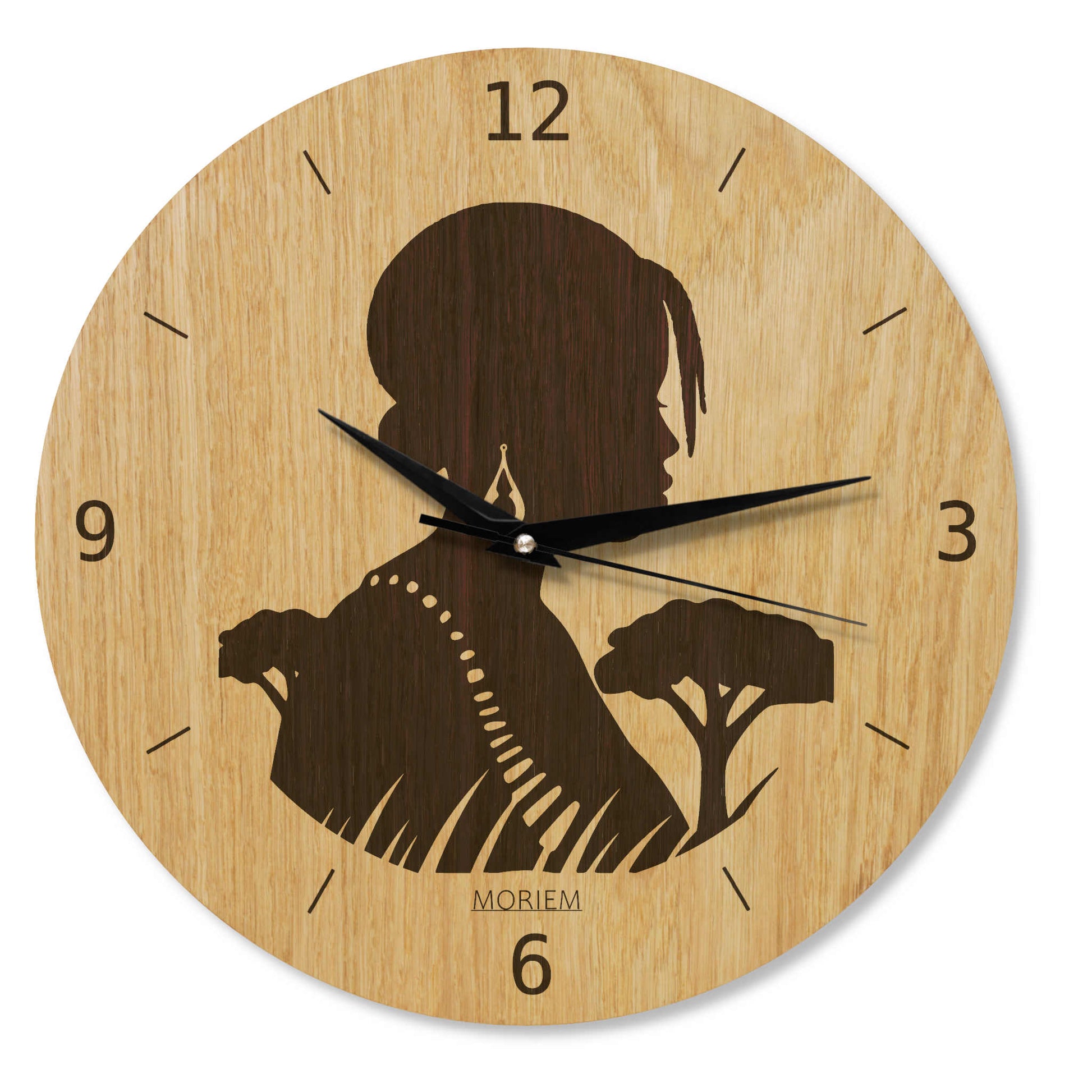 Wanduhr Afrika - Frau Siluette - Wohnzimmeruhr Holz - moderne Wohnzimmeruhr Eiche - 30 cm/40 cm groß
