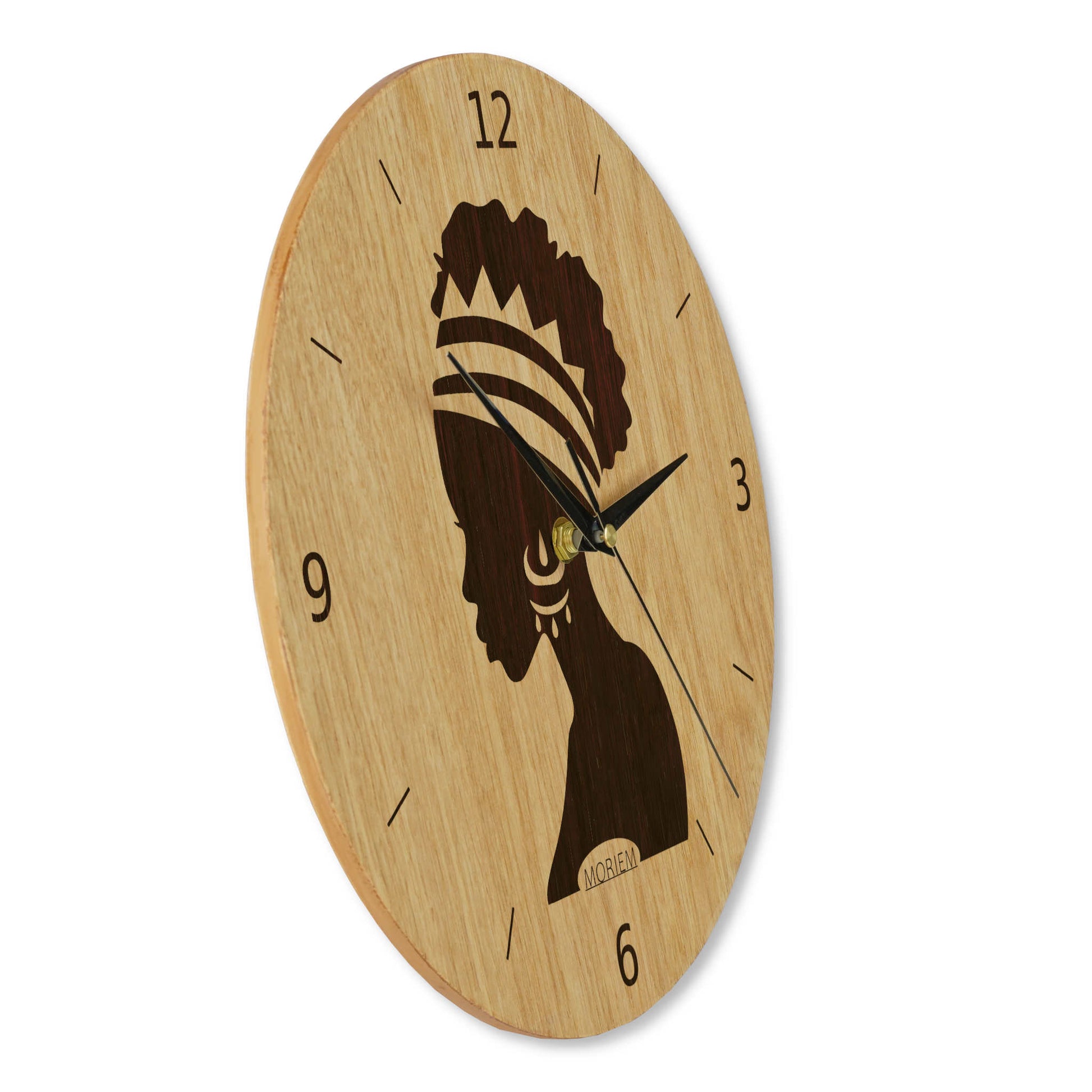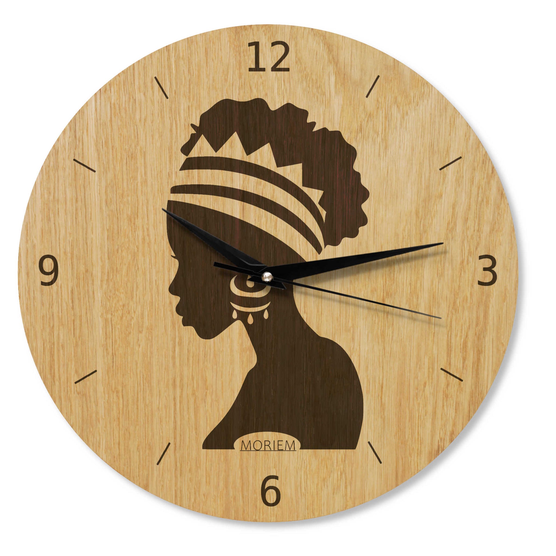 Wanduhr Afrika Frau - Wohnzimmeruhr Holz - moderne Wohnzimmeruhr Eiche - 30 cm/40 cm groß