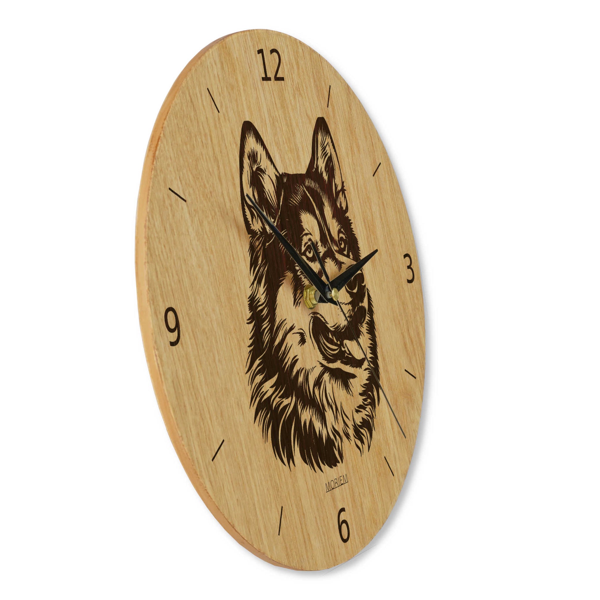 Wanduhr aus Holz - Wohnzimmeruhr modern mit Hundemotiv - 30 cm/40 cm groß