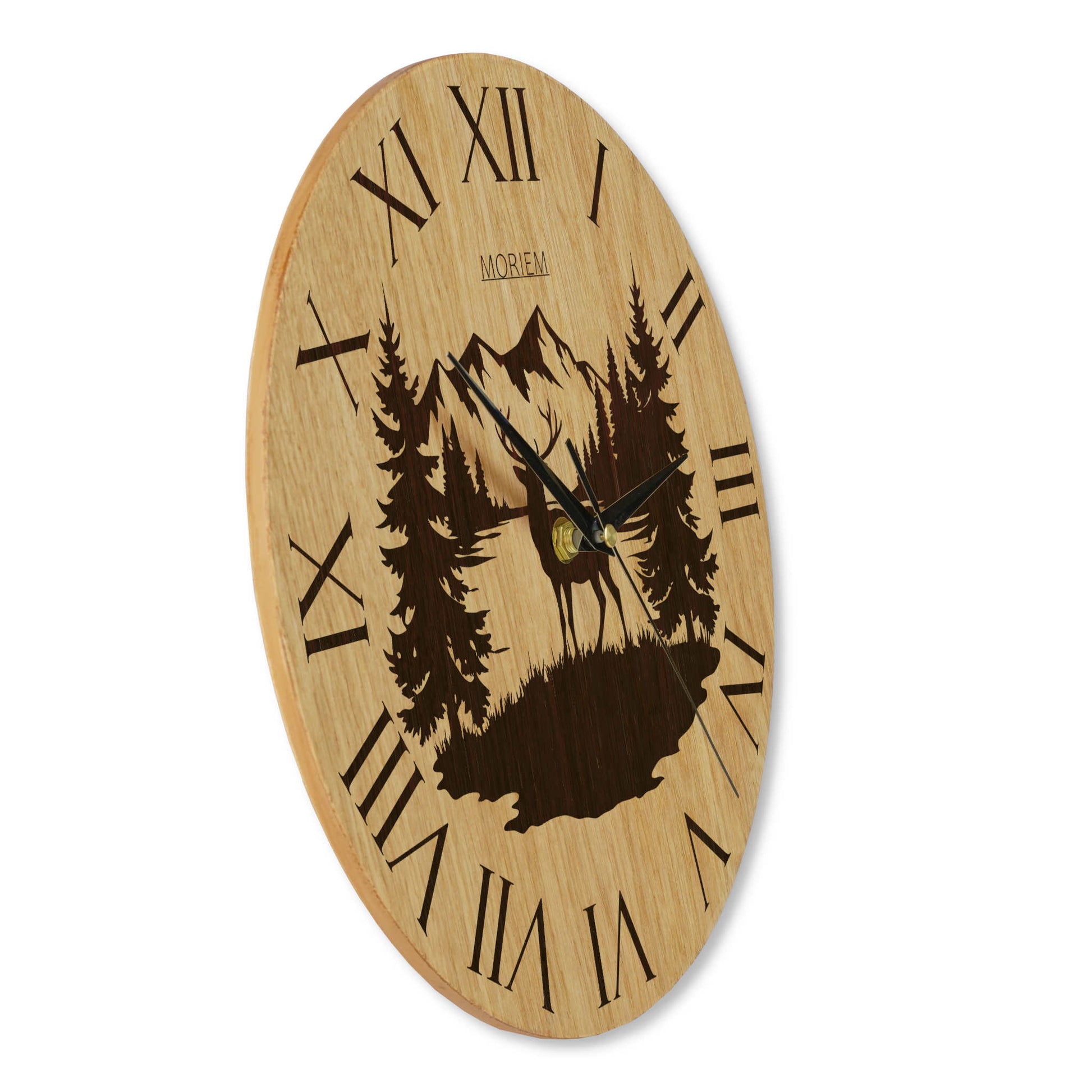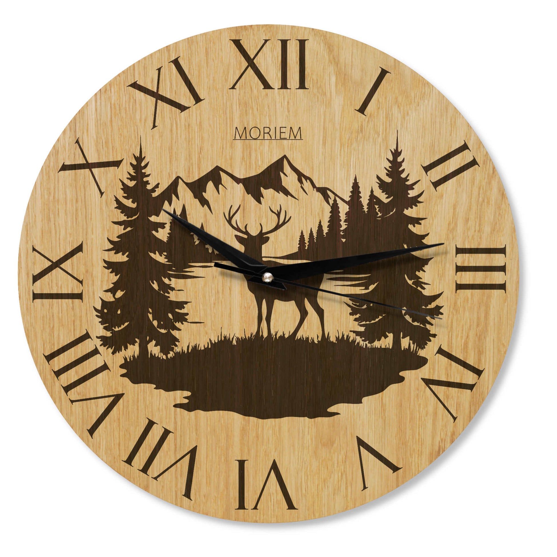 Wanduhr Berge rustikal - Wohnzimmeruhr Holz Hirsch Eiche - 30 cm/40 cm groß