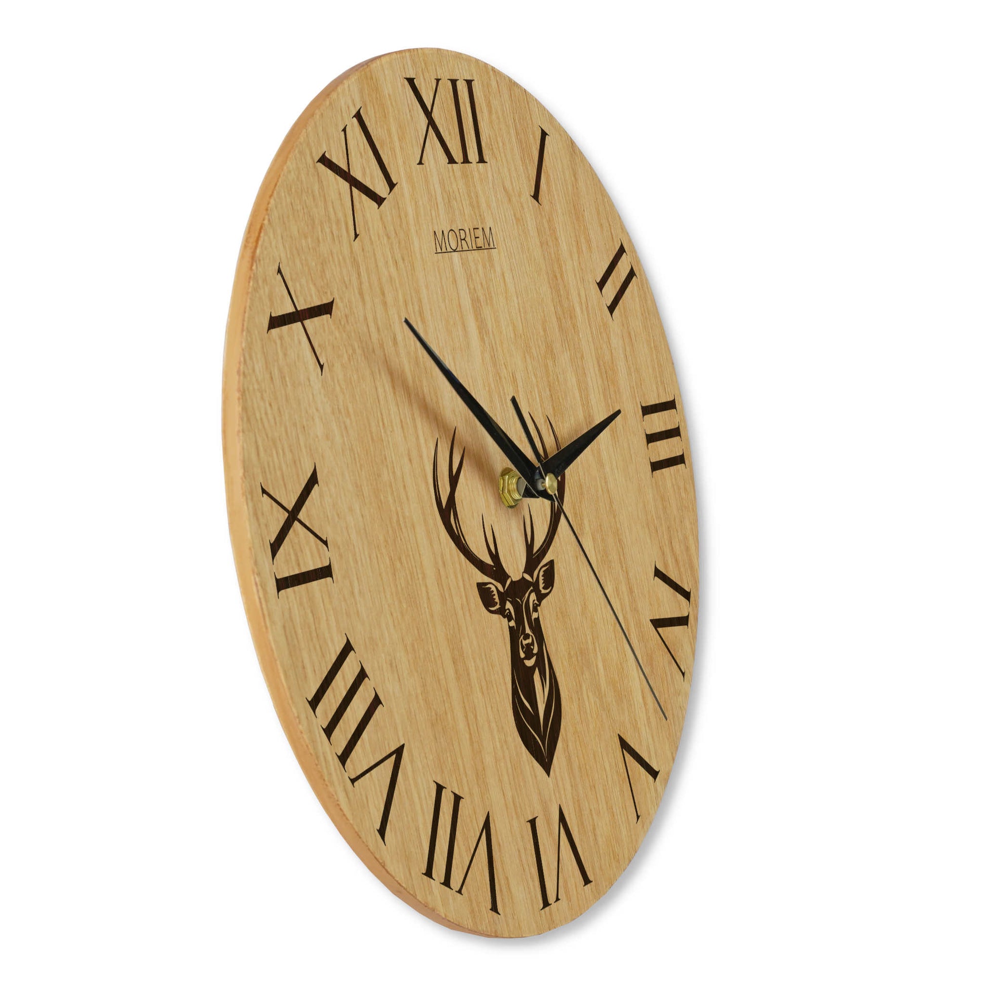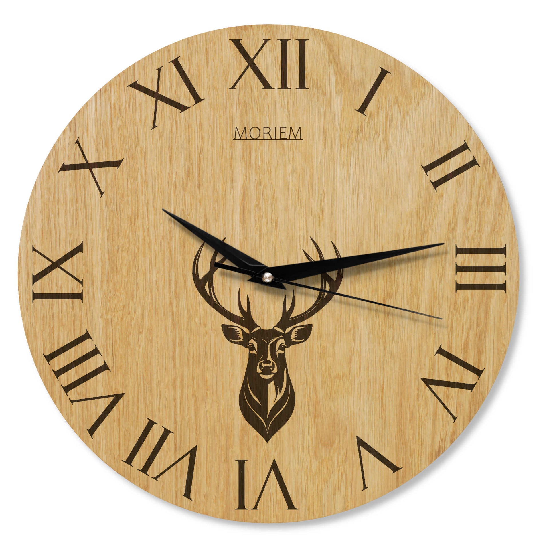 Wanduhr Hirsch Vintage - Wohnzimmeruhr mit Hirschkopf Motiv - 30 cm/40 cm groß
