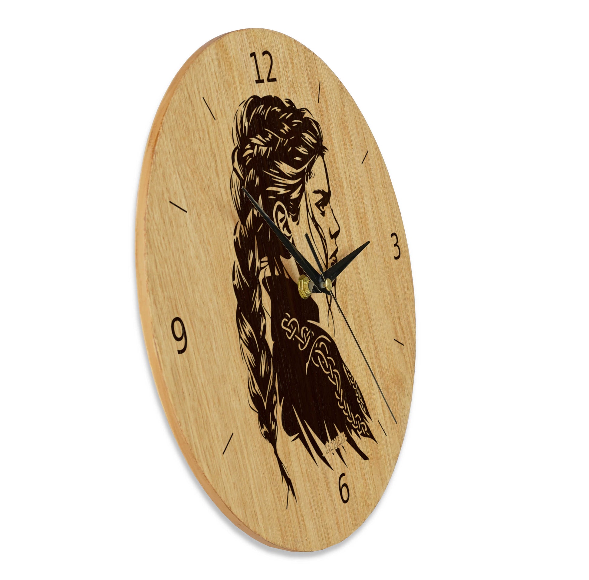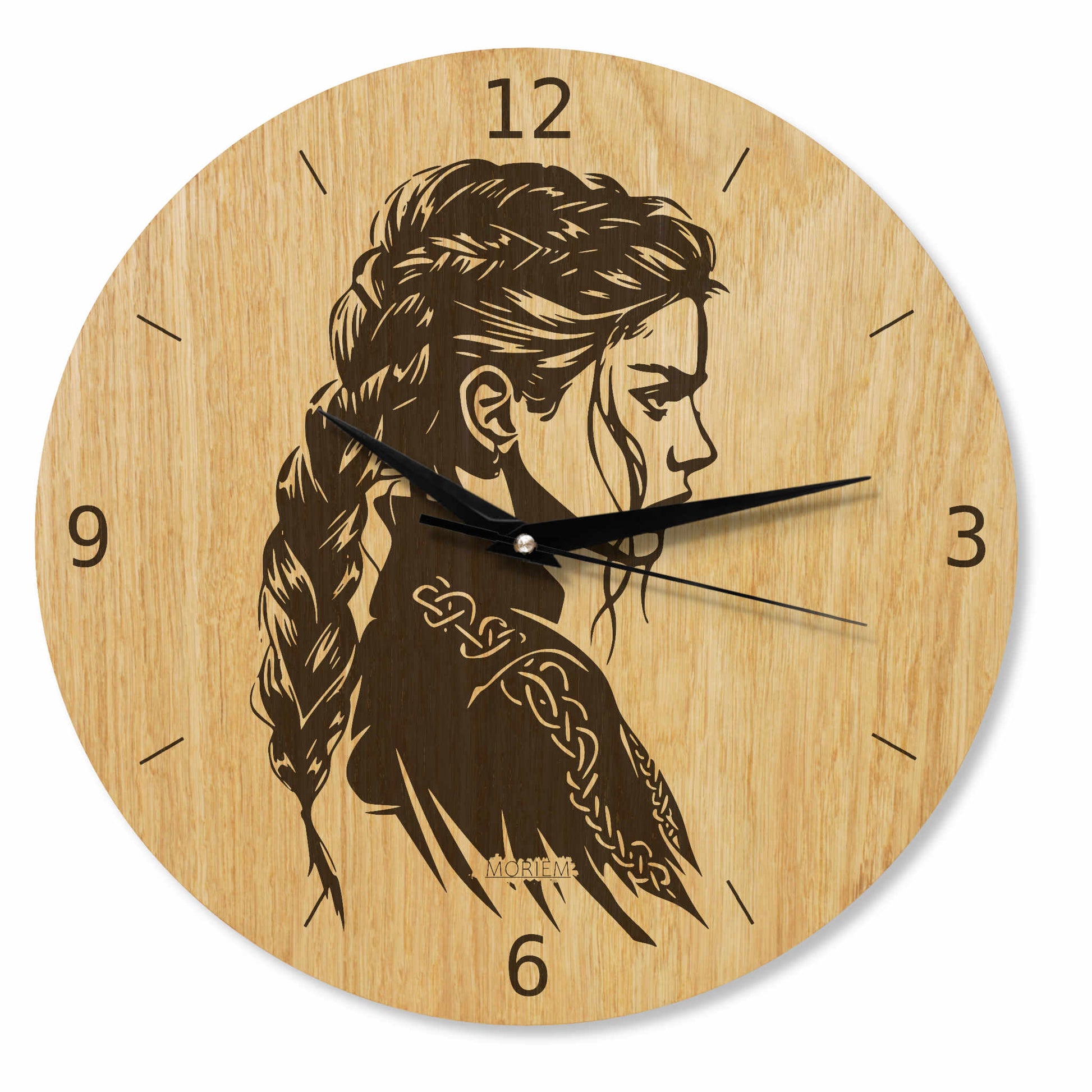 Wanduhr Holz mit Wikinger Frau Motiv - Wohnzimmeruhr rustikal eiche - 30 cm/40 cm Wanduhr