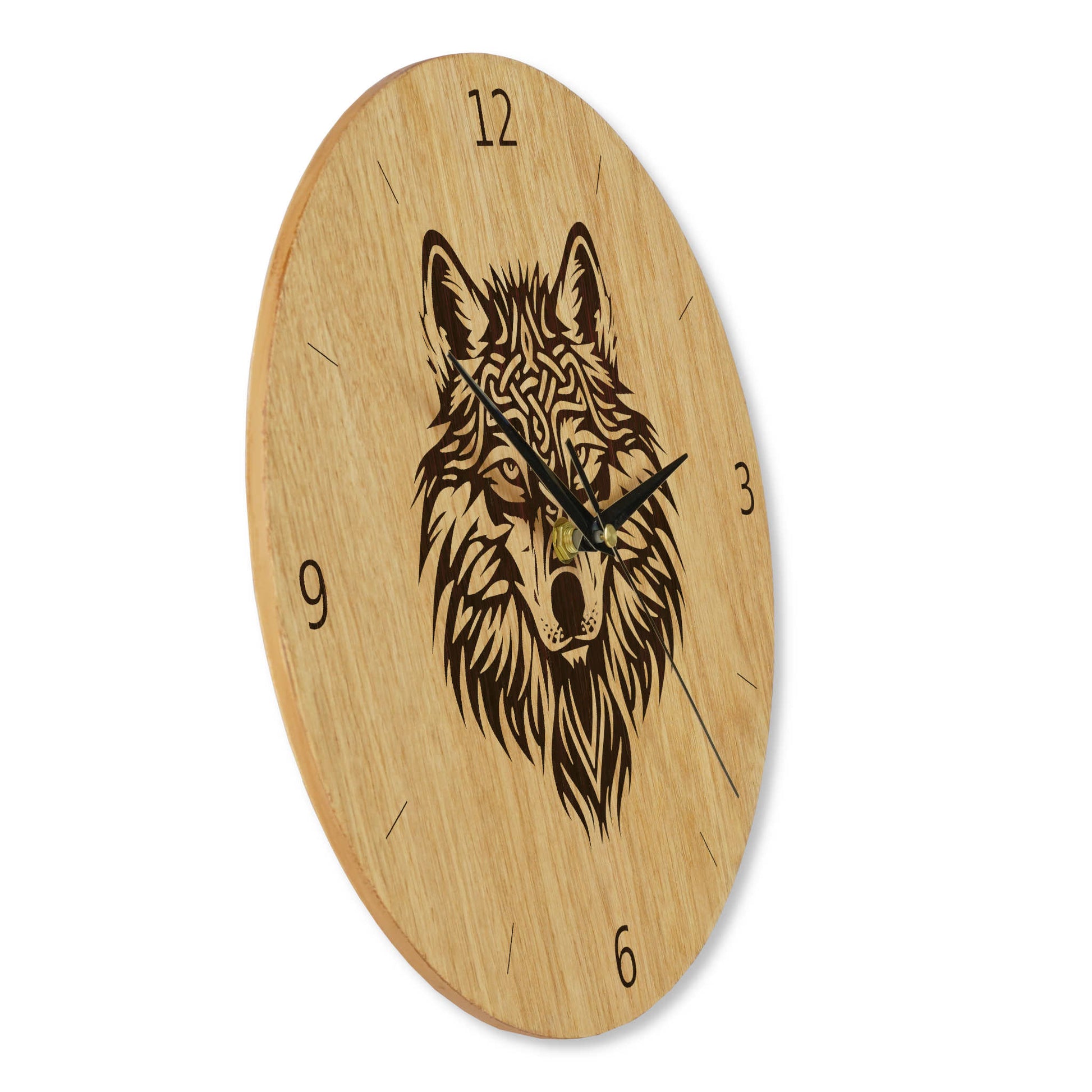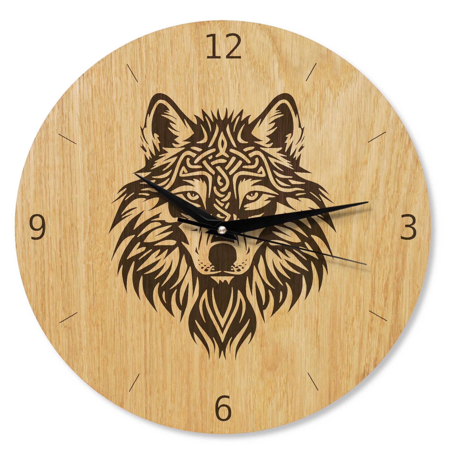 Wanduhr Holz - Wikinger Motiv - Wikinger Wolf - Eiche 30 cm/40 cm Runenuhr