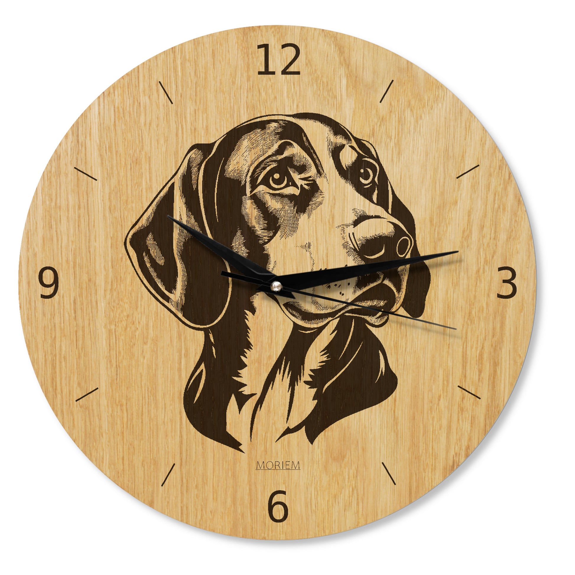 Wanduhr Holz - Wohnzimmeruhr modern mit Hunde Motiv - 30 cm/40 cm groß