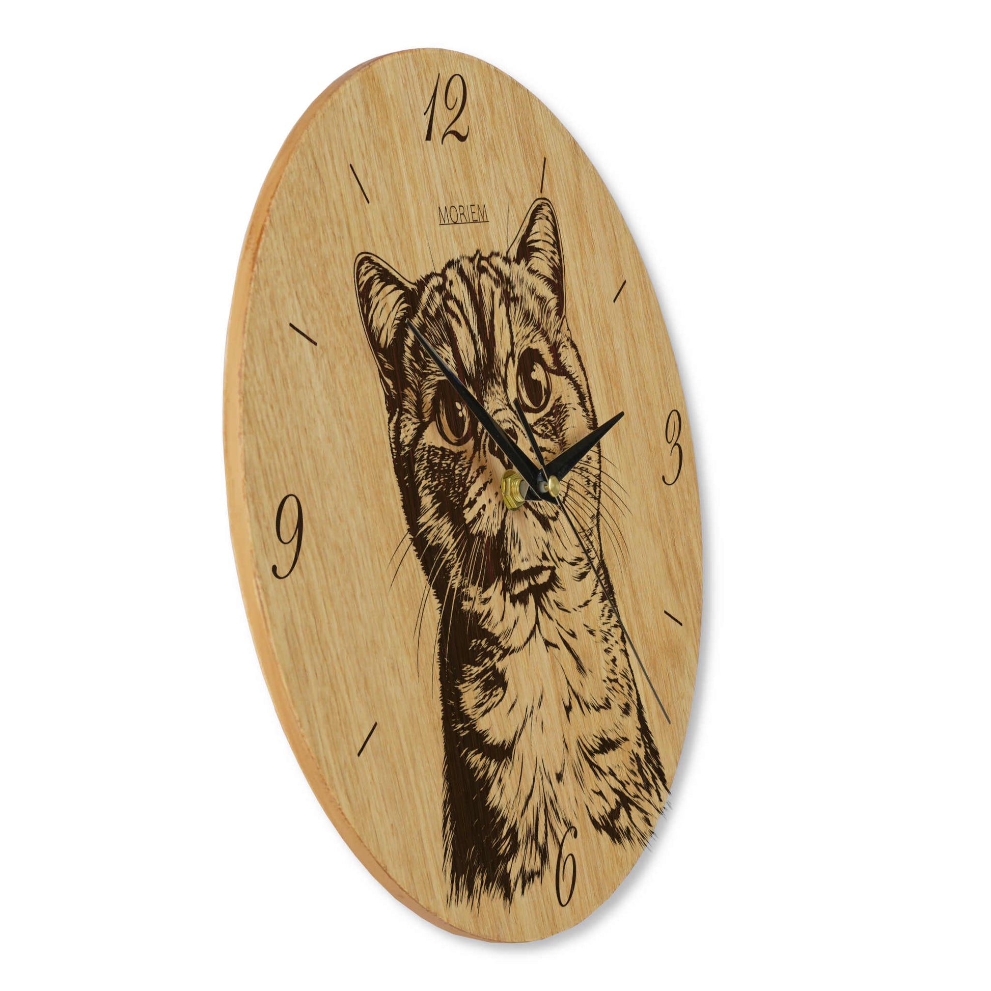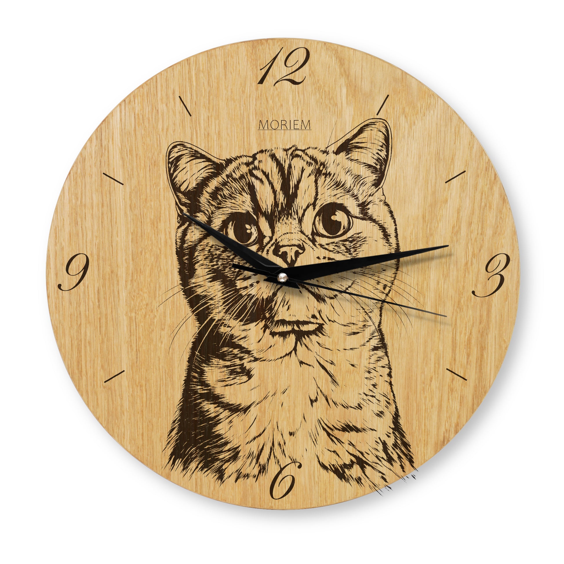 Diese charmante Wanduhr aus Eichenholz mit einem Durchmesser von 30 cm zeigt ein verspieltes Katzenmotiv und bringt so eine fröhliche Stimmung in Ihr Wohnzimmer. Das moderne Design kombiniert Funktionalität mit einem liebevollen Blickfang für Katzenliebhaber, die ihrem Zuhause eine lebendige und stilvolle Note verleihen möchten.