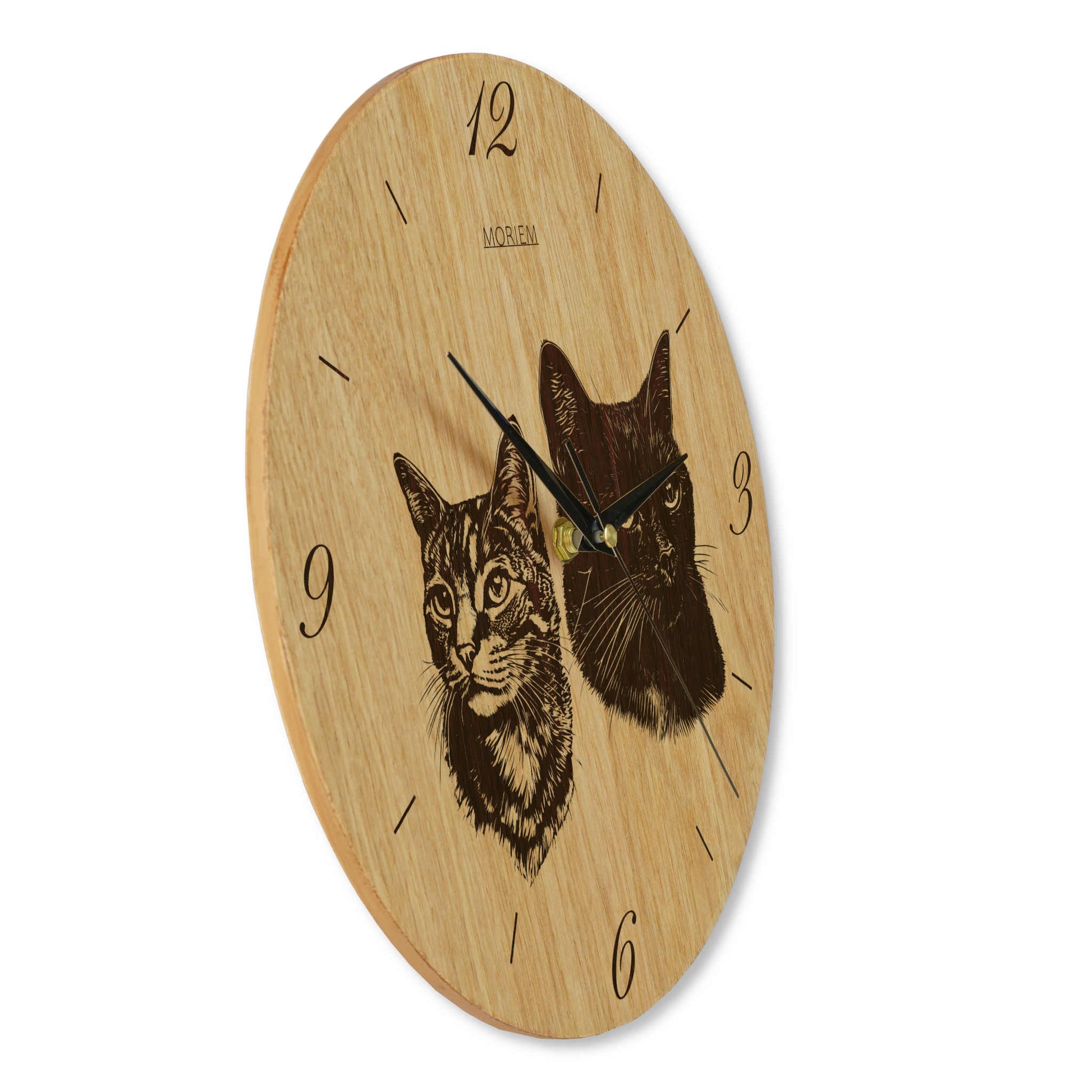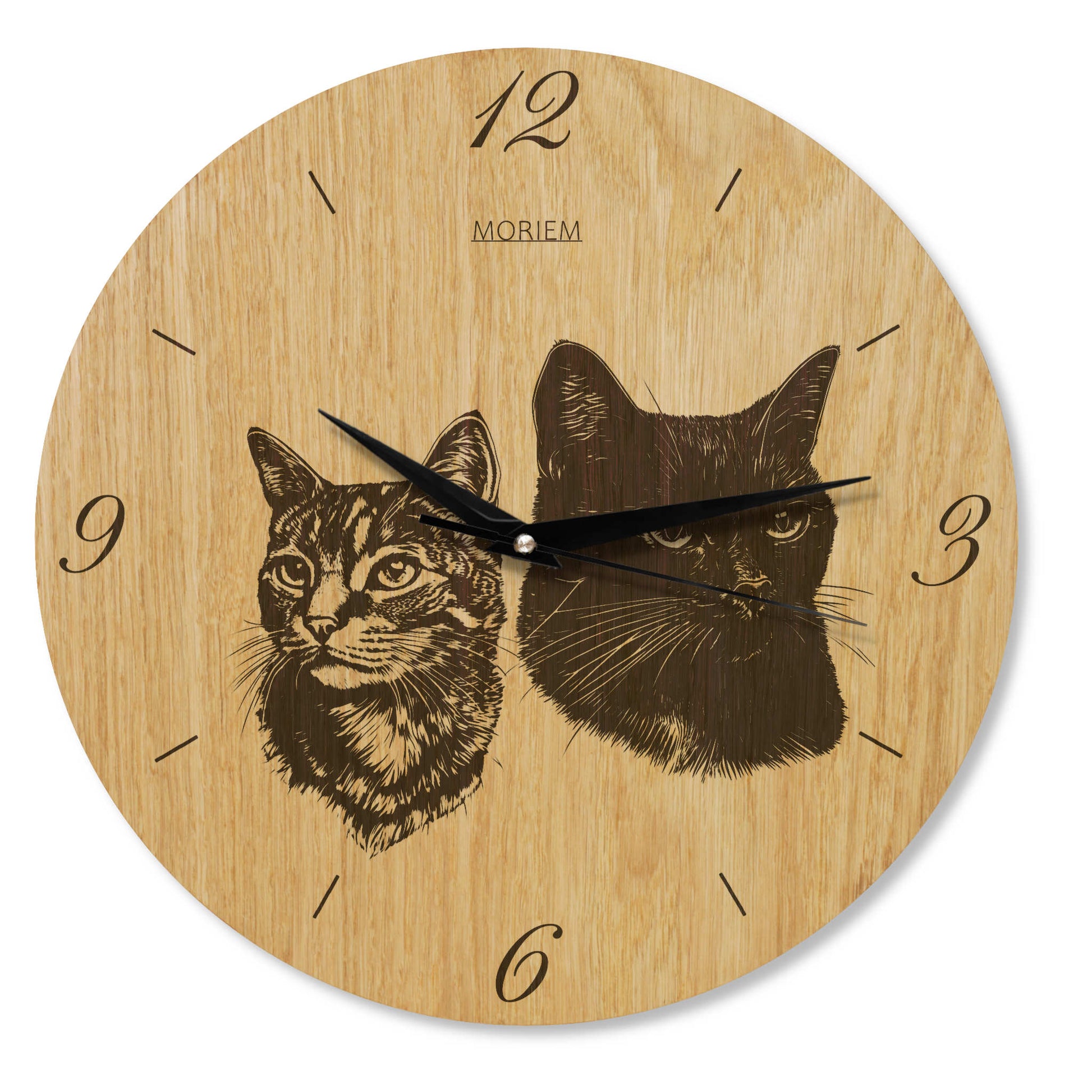 Wanduhr Katze -Motiv: zwei Katzen - moderne Wohnzimmeruhr - Eiche 30 cm/40 cm groß