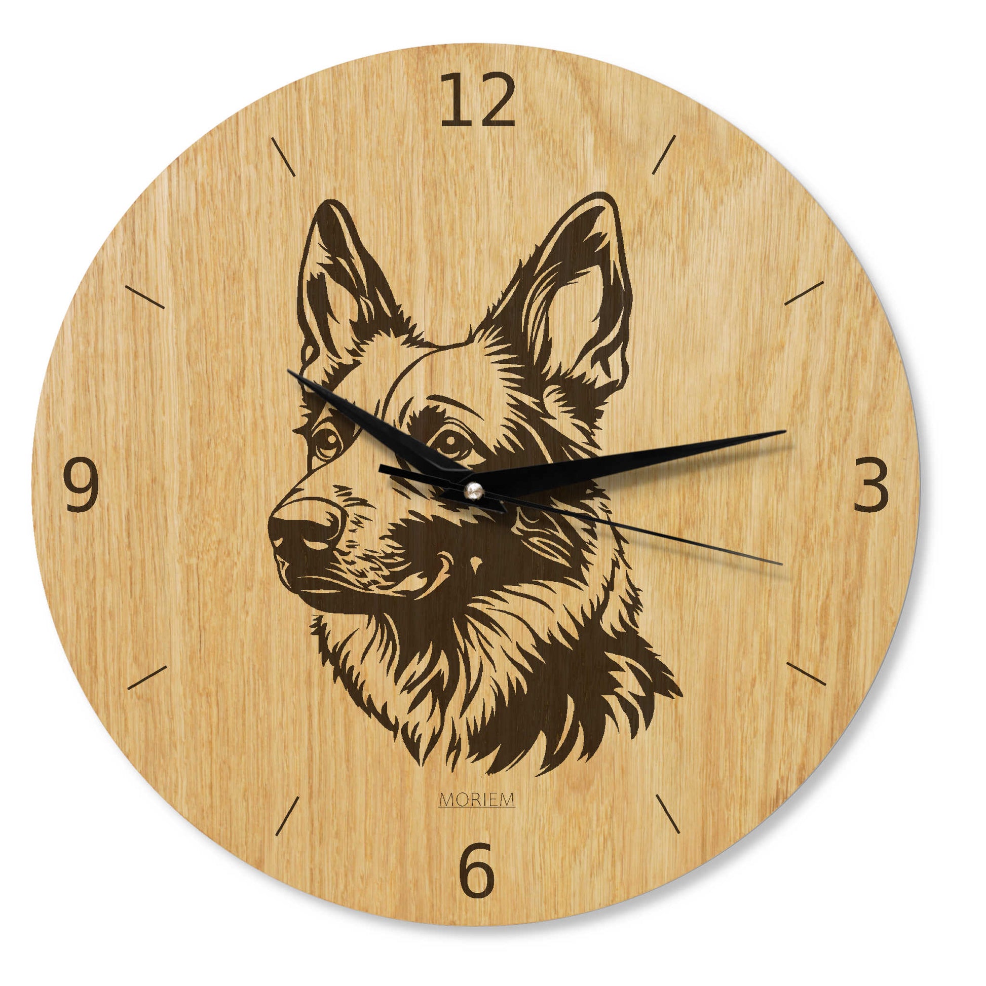 Diese moderne Wanduhr mit Schäferhund-Motiv verleiht Ihrem Wohnzimmer eine stilvolle und persönliche Note. Mit einem Durchmesser von 30 cm überzeugt sie durch ihr edles Design und die feine Detailarbeit des Hundemotivs. Das hochwertige Holz schafft eine warme Atmosphäre, während das präzise Uhrwerk eine zuverlässige Zeitangabe garantiert. Ein elegantes Dekorationsstück für Liebhaber des klassischen Schäferhundes und anspruchsvoller Wohnkultur.