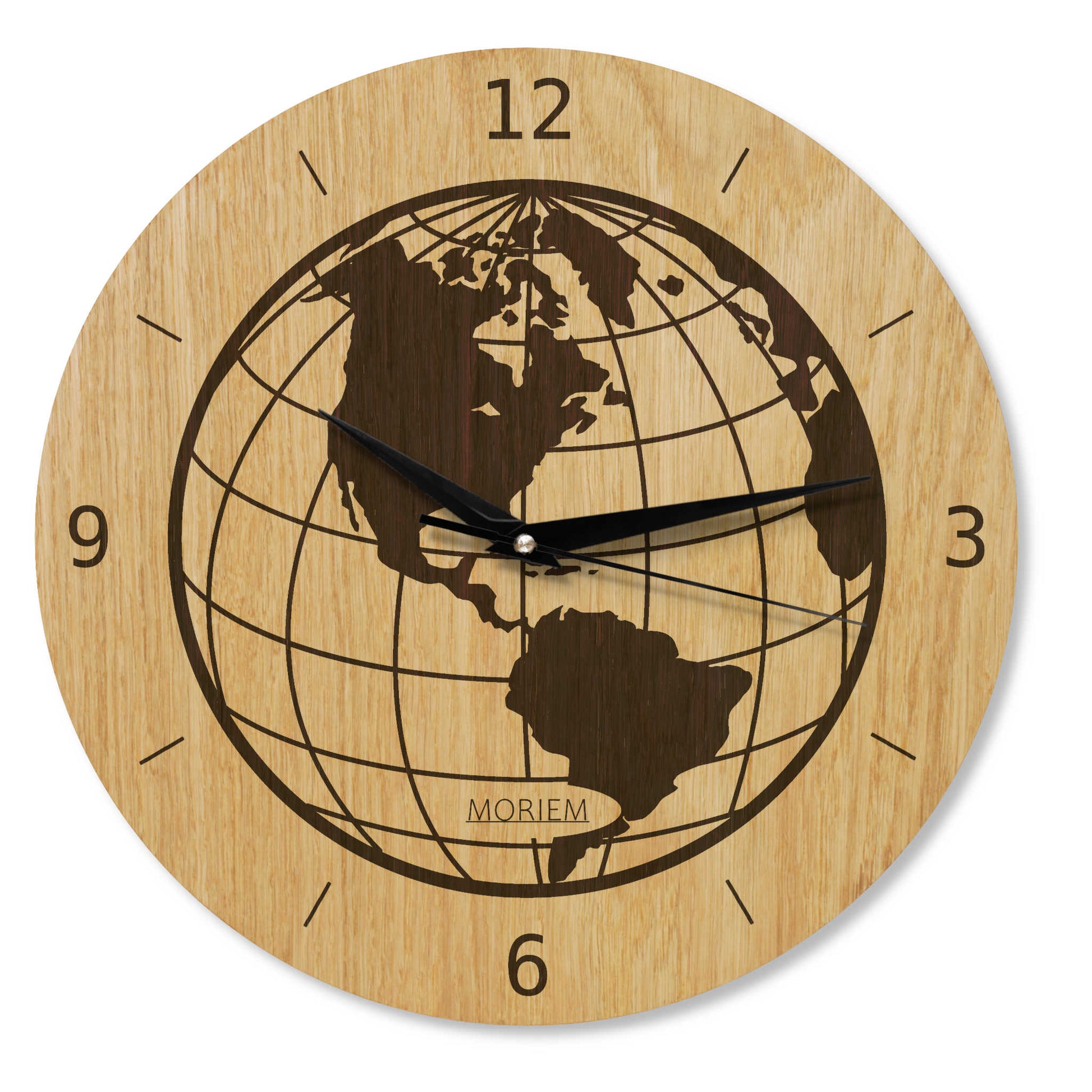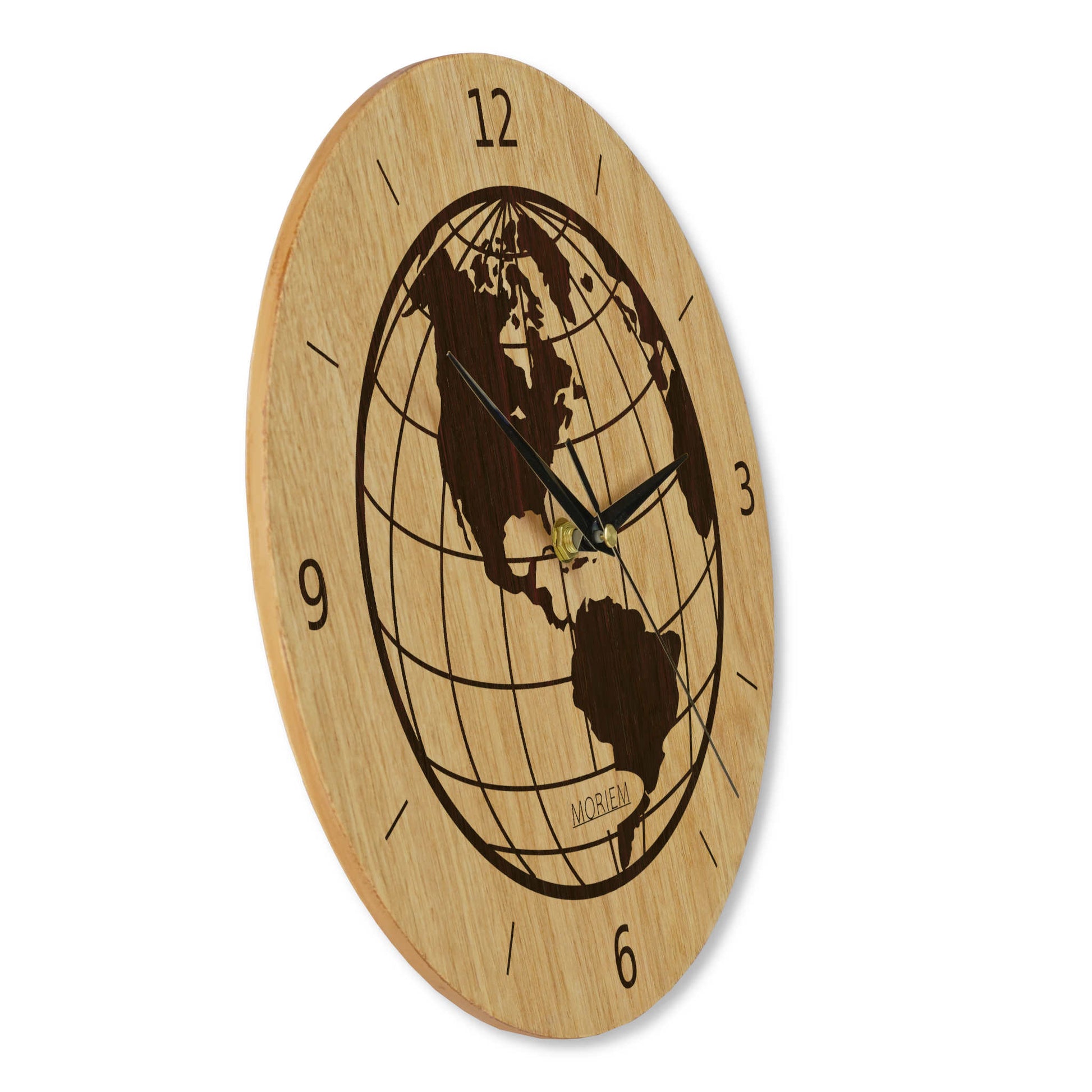 Wanduhr Weltkarte aus Holz- Wohnzimmeruhr mit Globus Motive - 30 cm/40 cm groß