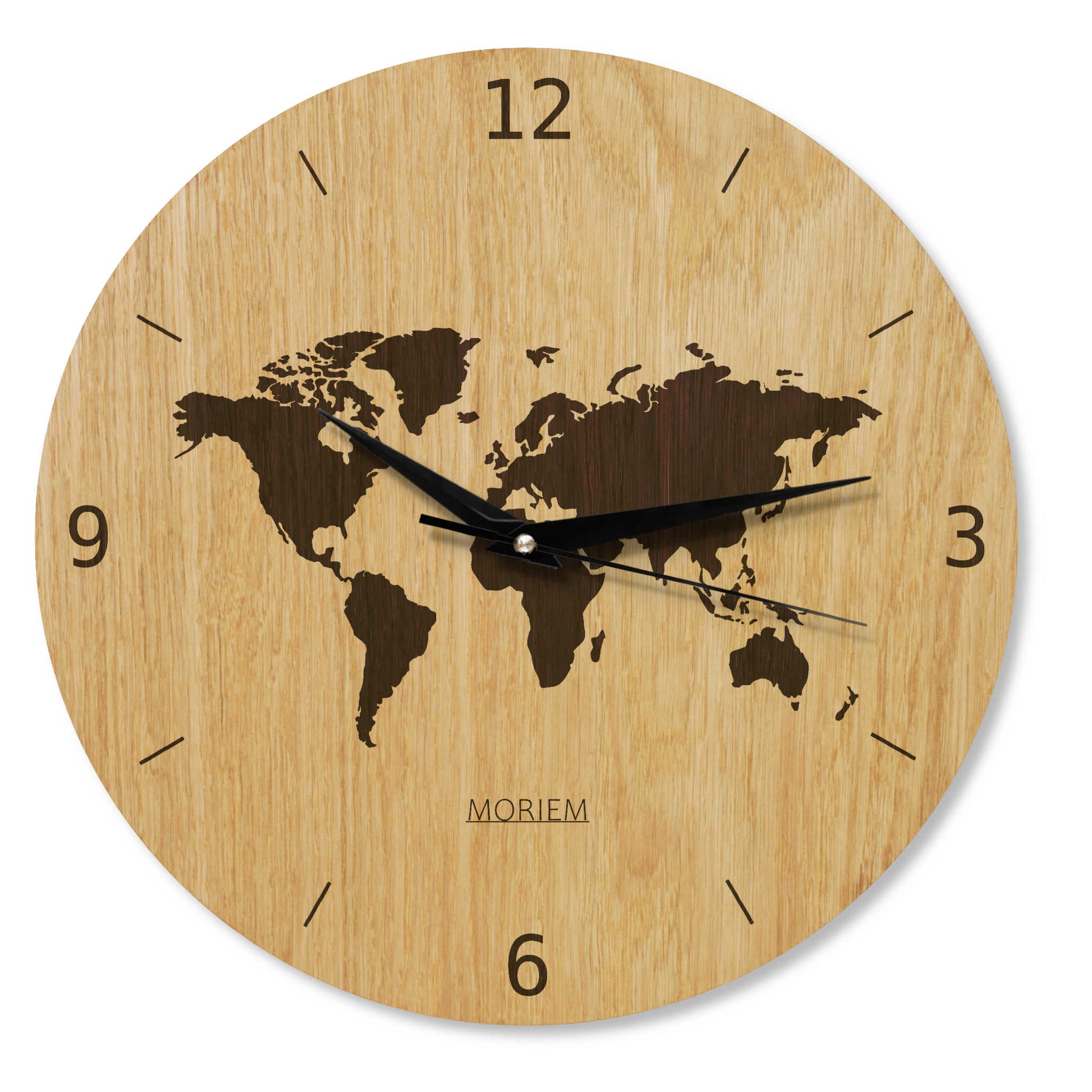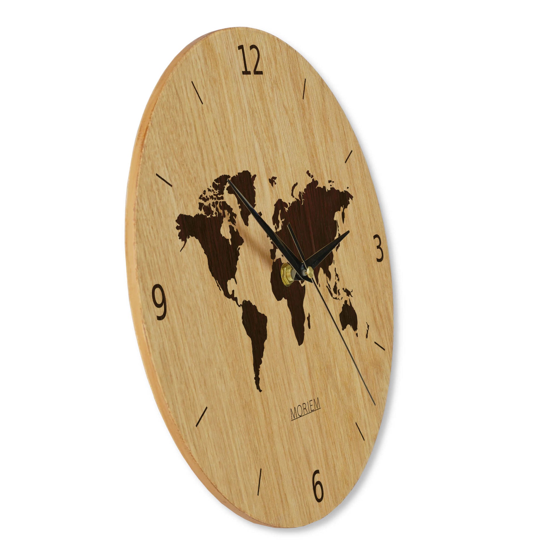 Wanduhr Weltkarte aus Holz- Wohnzimmeruhr mit Weltkarten Motive - 30 cm/40 cm groß