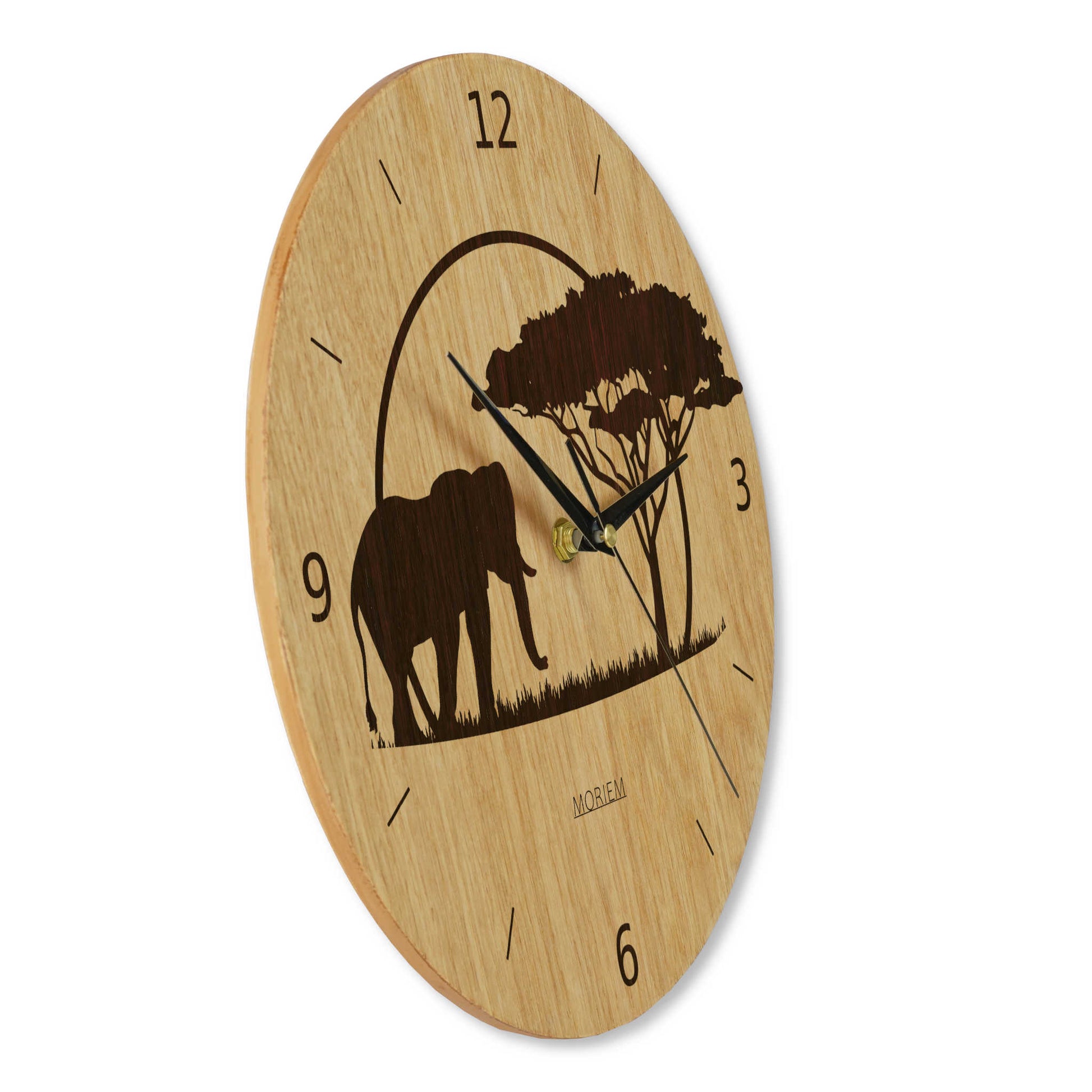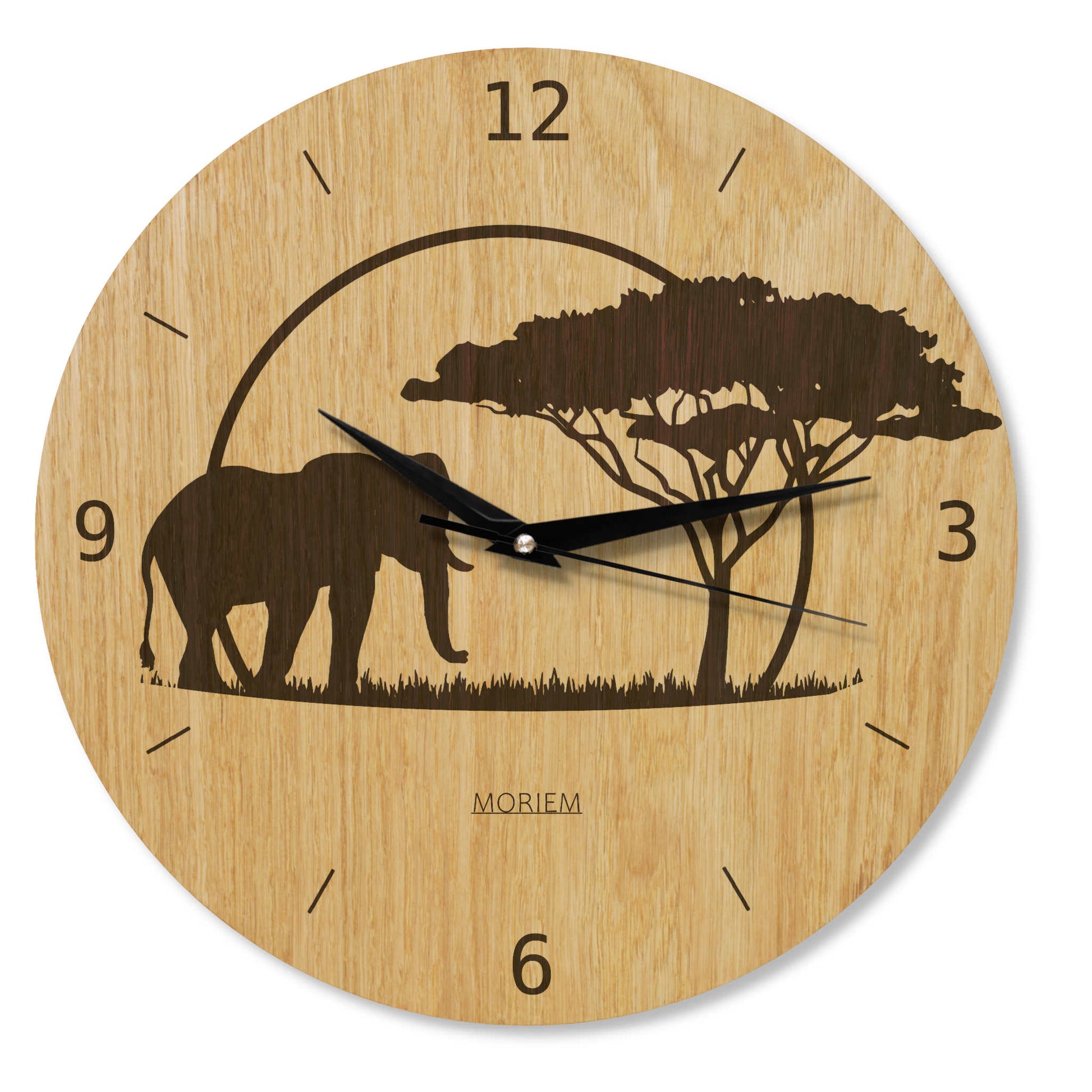 Wanduhr Afrika - Wohnzimmeruhr Holz - Motiv Afrika-Siluette - moderne Wohnzimmeruhr Eiche - 30 cm/40 cm groß